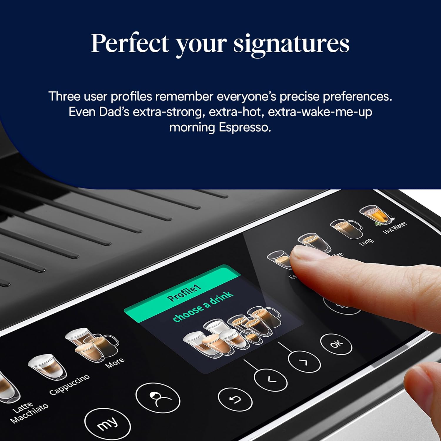 - Multiple Profiles & Dual Brewing – Save preferences for up to 3 users and brew two espressos simultaneously for convenience.